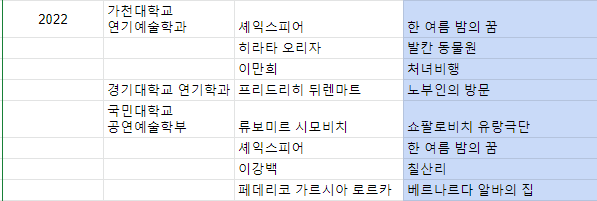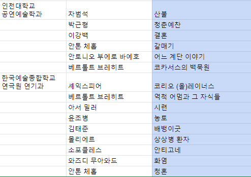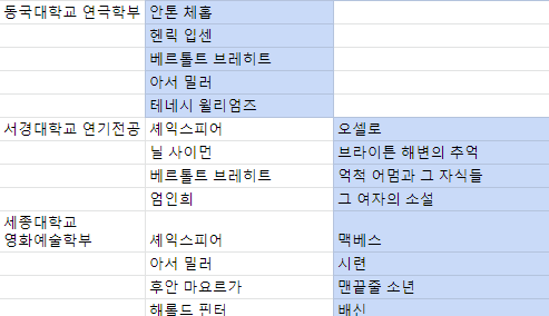 동국대는 특이하게 작가를 지정하고, 자유 희곡을 선정했습니다.