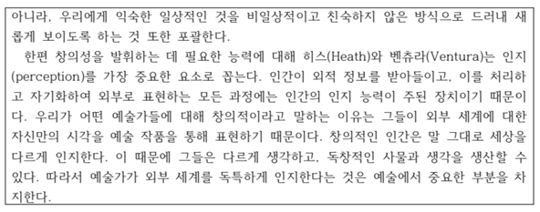 핵심개념을 이해한 뒤, 논리를 바탕으로 하여 예술에 대한 자신의 견해를 설명하는 것이 중요해 보입니다.